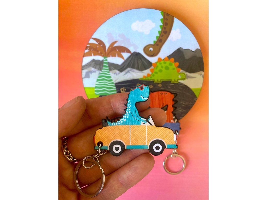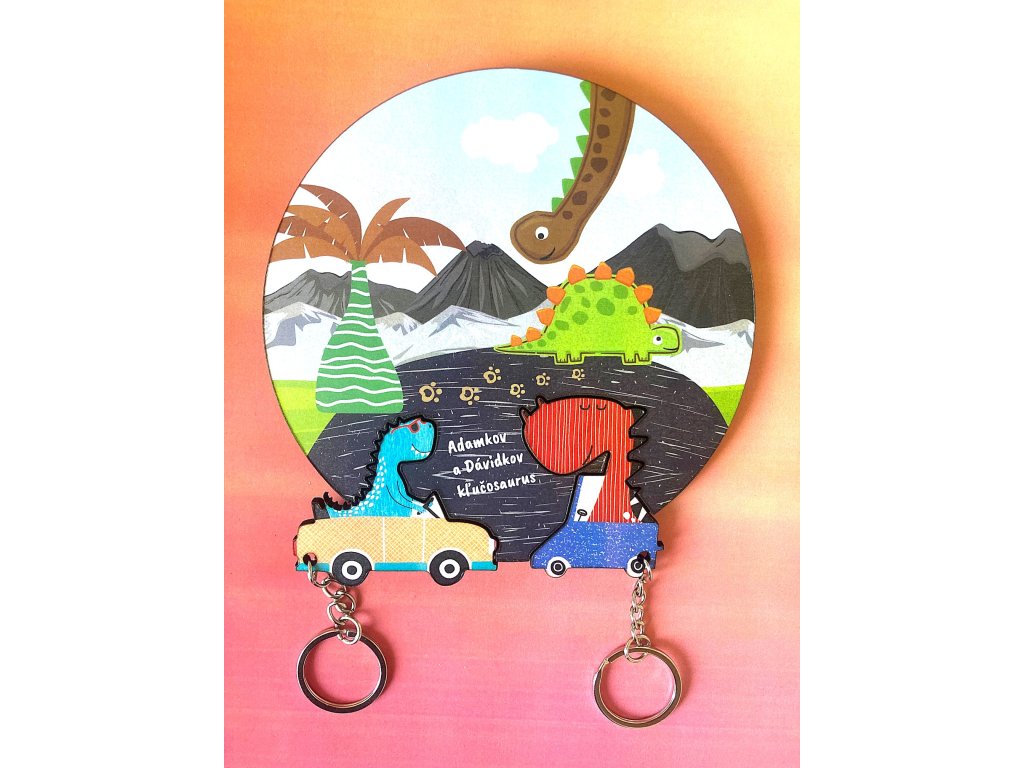 Predstavujeme Kľúčosaurusa od Laja — veselý a praktický drevený držiak na kľúče s motívom dinosaurov. Každý kus je ručne vyrobený a môže byť personalizovaný menom (napr. „Adamkov a Dávidkov kľúčosaurus“). Súčasťou sú dve malé drevené kľúčenky pripevnené kovovou retiazkou na dokonalé ukladanie detských kľúčov.