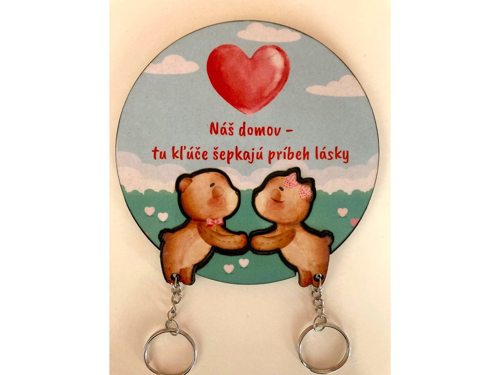 Drevený držiak na kľúče „Náš domov“ – tu kľúče šepkajú príbeh lásky