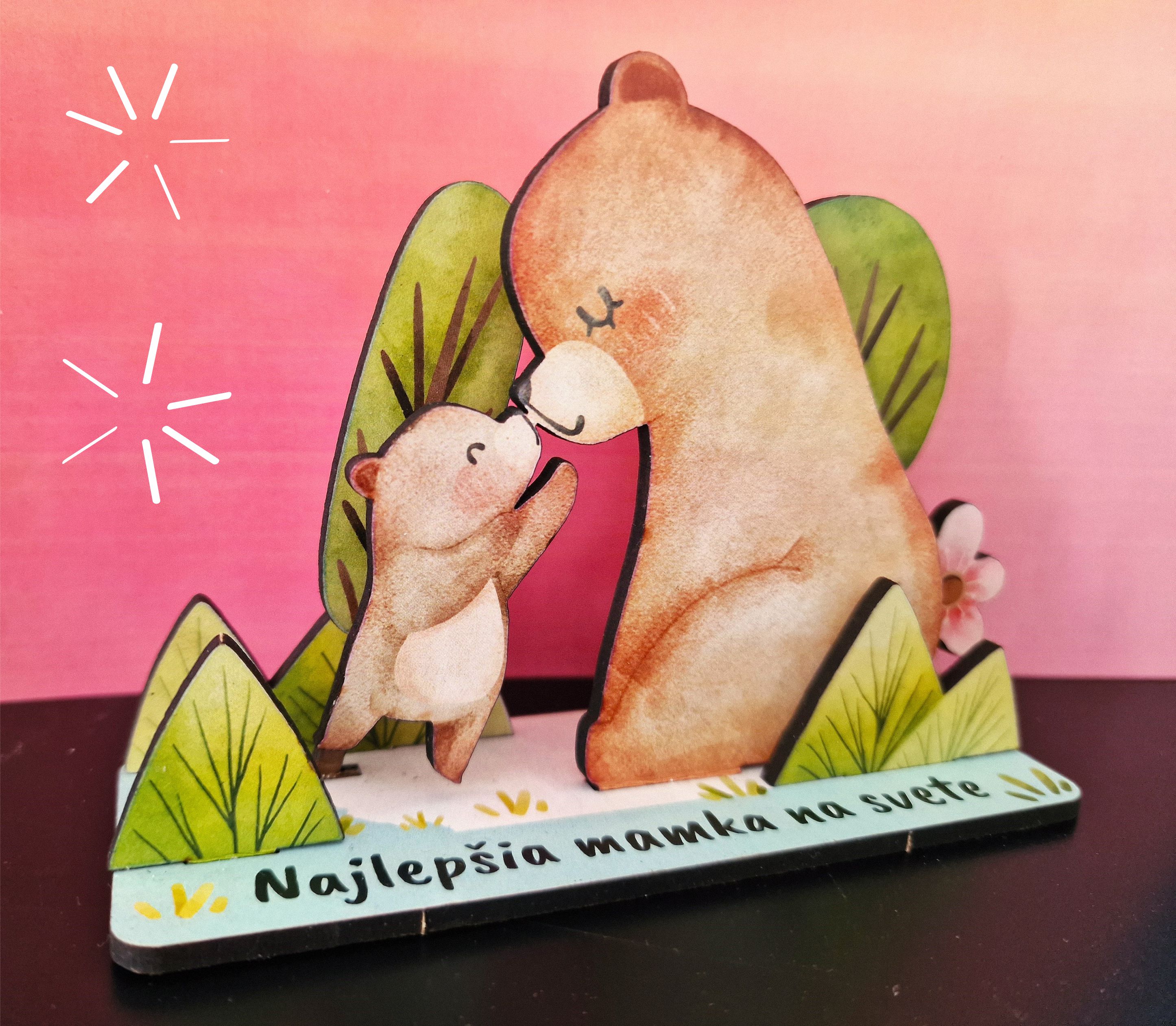 Materiál: vyrobené z 3 mm MDF dreva a láskyplne potlačená eco-solventným atramentom. Ľahké a odolné MDF je lisované drevo šetrné k životnému prostrediu.